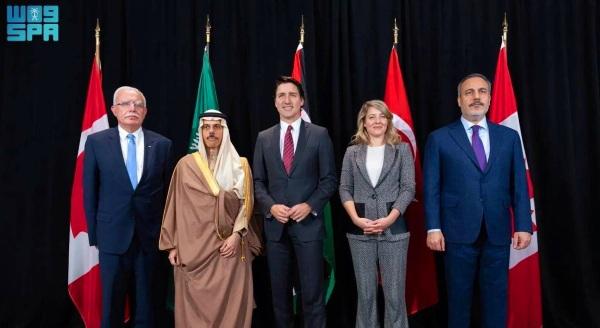 Today, Prime Minister Justin Trudeau, joined by the Minister of Foreign Affairs, Mélanie Joly, met with a delegation of foreign ministers from Saudi Arabia, Türkiye, and the Palestinian Authority to discuss the ongoing conflict between Israel and Hamas.